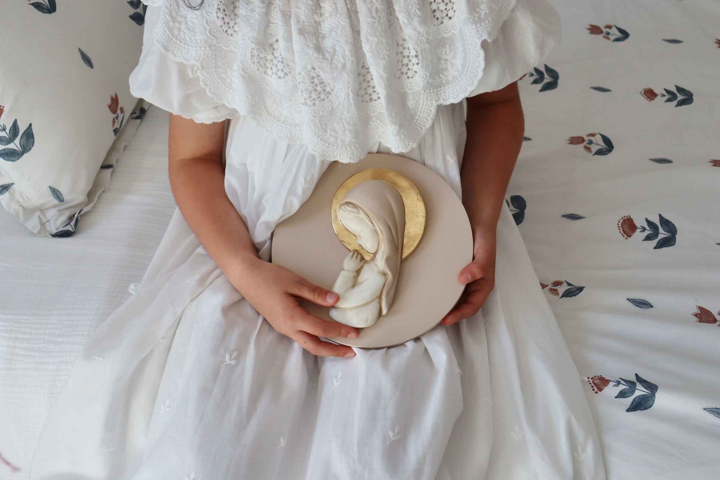 Desde hace más de 10 años, la artista Leticia Mezzetta da vida a estas virgencitas para niños, un objeto delicado, artesanal y único. Perfecto para decorar las habitaciones de los más pequeños y un regalo inolvidable en momentos tan especiales como nacimientos, bautizos o comuniones.