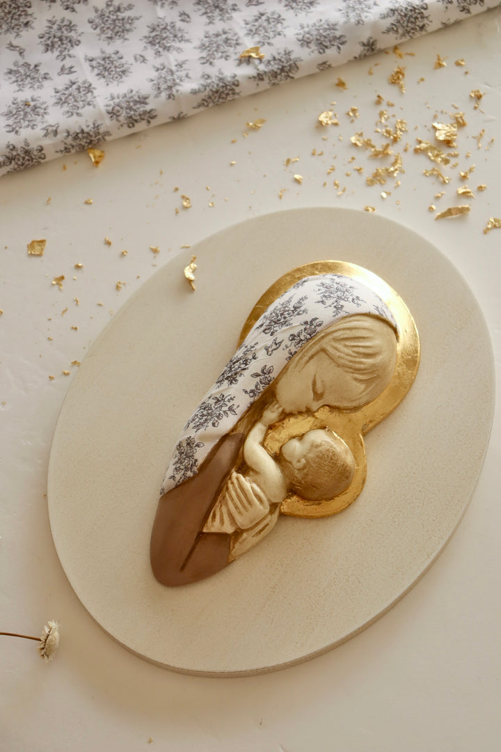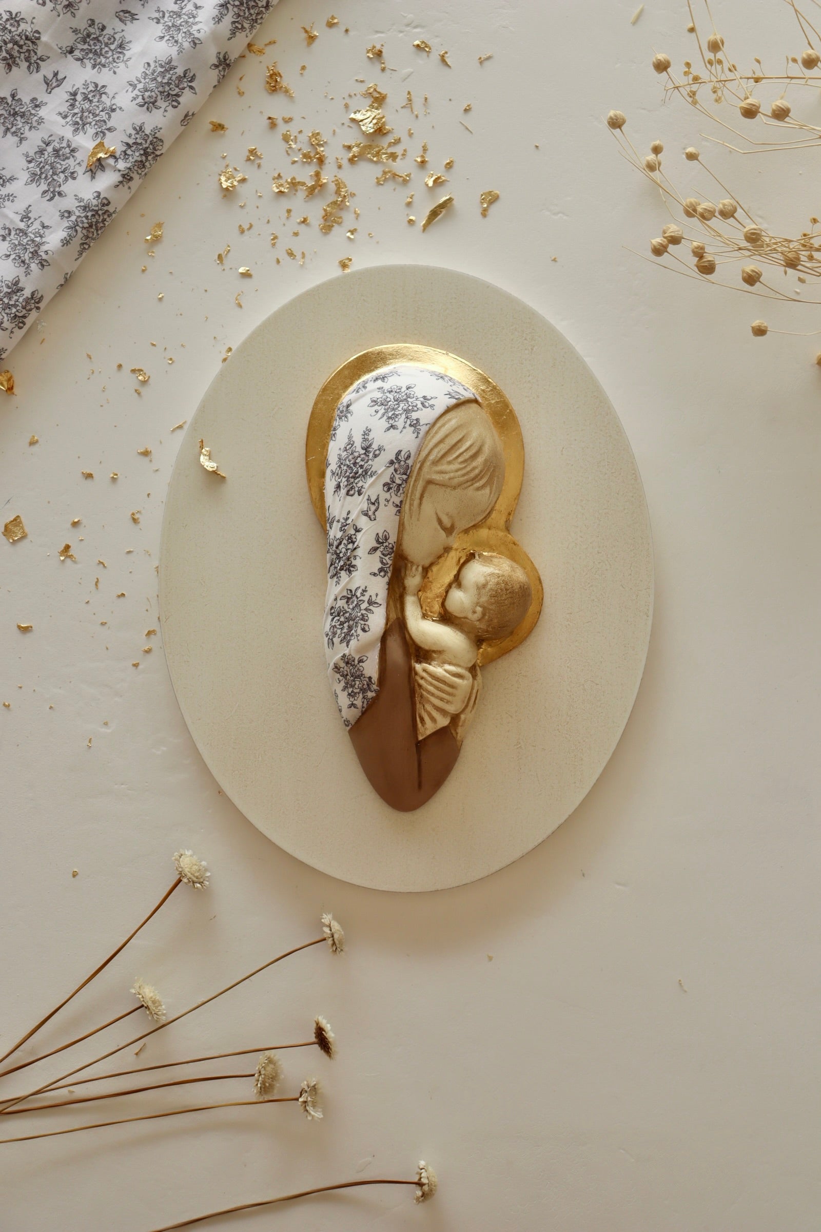 Nuestras virgencitas son un detalle especial y único a la hora de decorar la habitación de los pequeños de la casa. Las hacemos a mano, con mimo, de ahí su acabado lleno de detalles. No hay dos iguales, cada una de ellas habla por sí sola de la dedicación que les ponemos. Buscamos la combinación perfecta de materiales, colores y texturas para conseguir un objeto delicado, artesanal y capaz de transmitir el amor, la ternura y la protección de la maternidad.