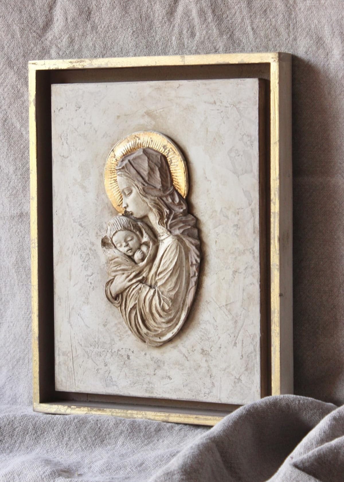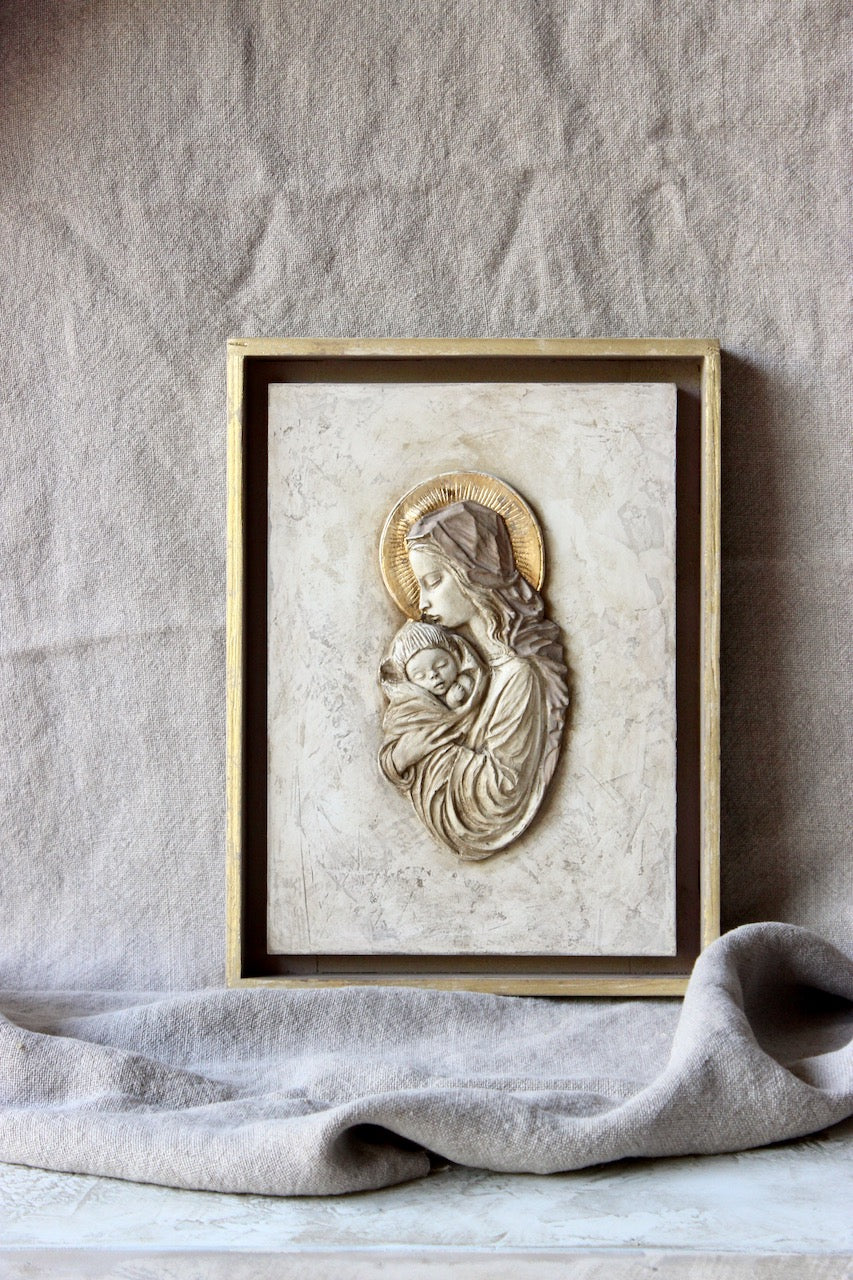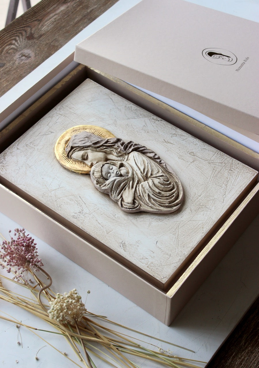 Esta virgen quedará perfecta en la entrada de casa, en el salón, en un dormitorio... No nos olvidamos de algo que para nosotras es fundamental: la ternura. La ternura que ponemos en nuestro trabajo y que queremos transmitir con todos nuestros productos.