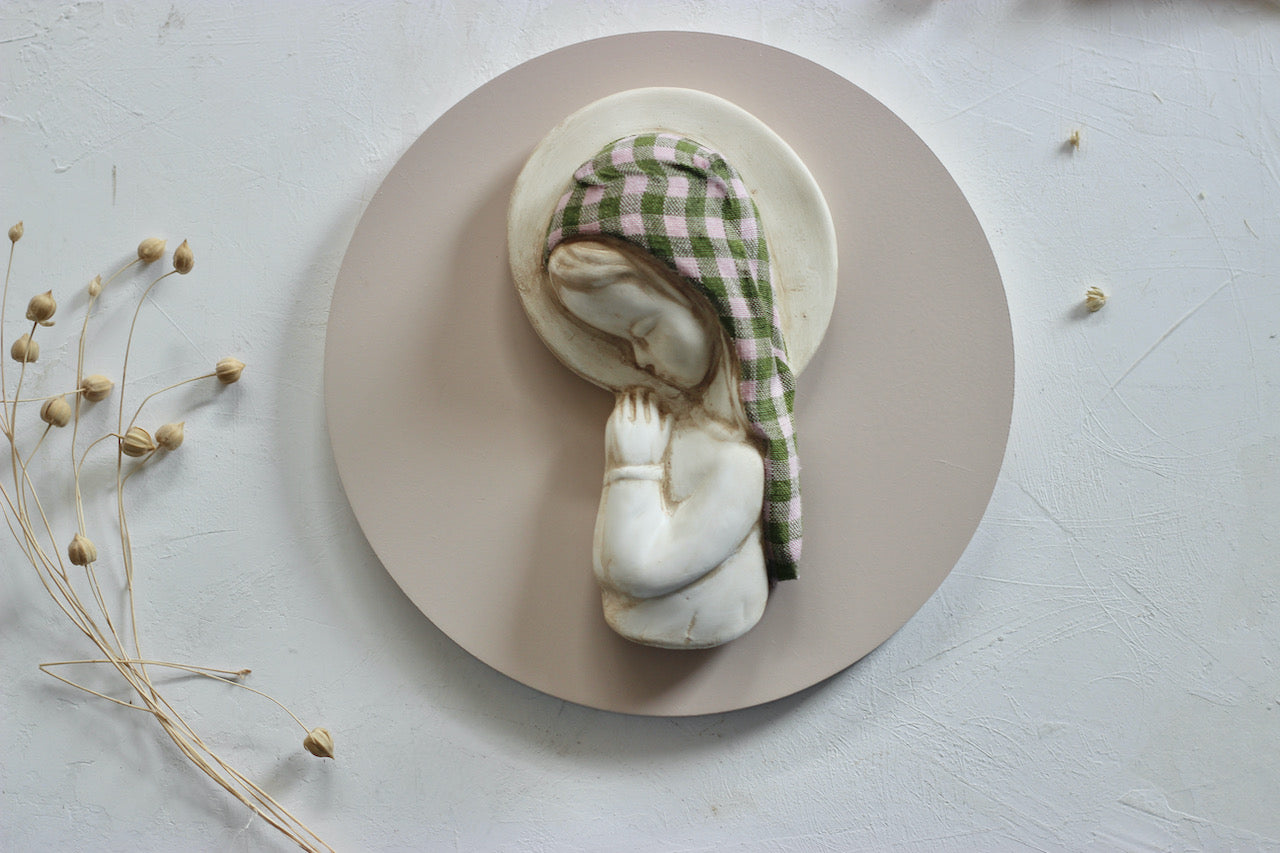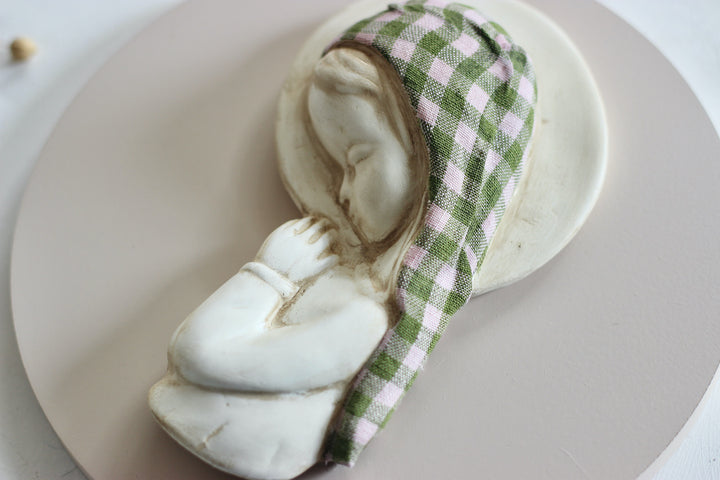 Nuestras virgencitas son un detalle especial y único a la hora de decorar la habitación de los pequeños de la casa. Las hacemos a mano, con mimo, de ahí su acabado lleno de detalles. No hay dos iguales, cada una de ellas habla por sí sola de la dedicación que les ponemos. Buscamos la combinación perfecta de materiales, colores y texturas para conseguir un objeto delicado, artesanal y capaz de transmitir el amor, la ternura y la protección de la maternidad.