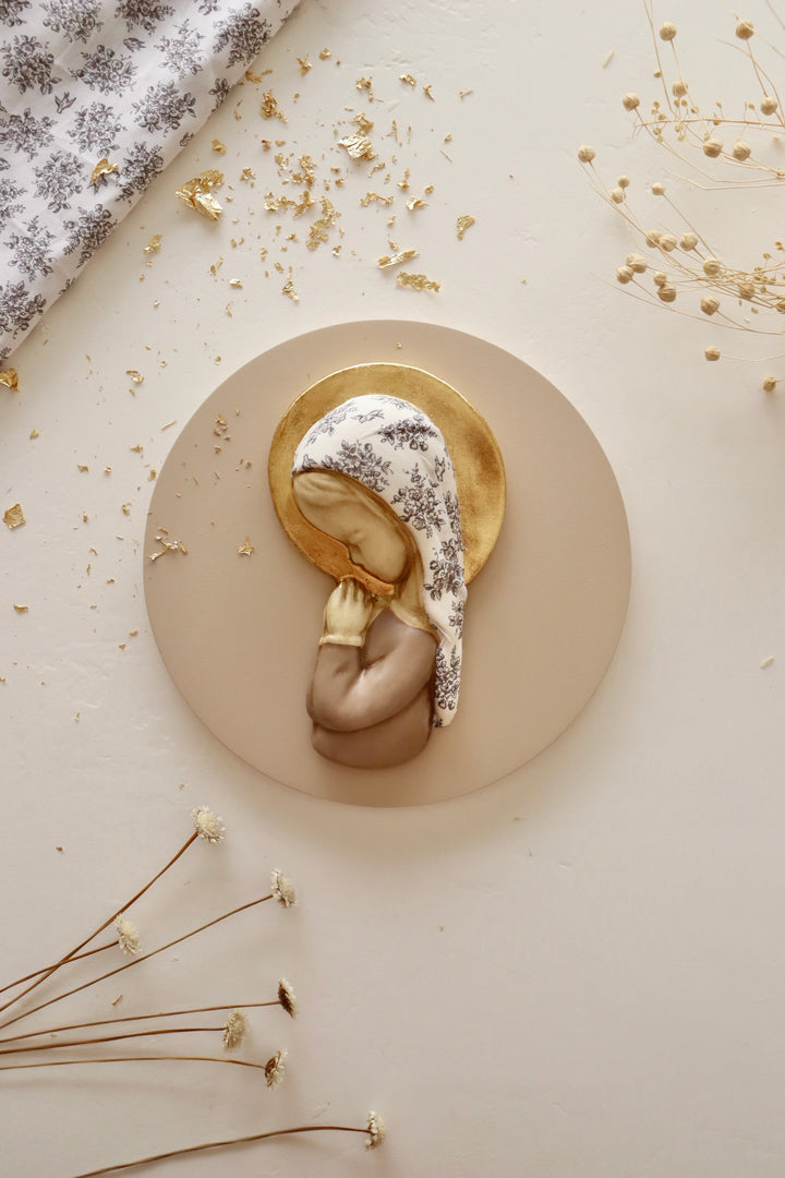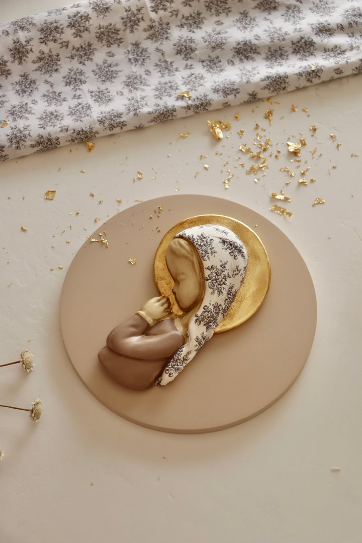 Nuestras virgencitas son un detalle especial y único a la hora de decorar la habitación de los pequeños de la casa. Las hacemos a mano, con mimo, de ahí su acabado lleno de detalles. No hay dos iguales, cada una de ellas habla por sí sola de la dedicación que les ponemos. Buscamos la combinación perfecta de materiales, colores y texturas para conseguir un objeto delicado, artesanal y capaz de transmitir el amor, la ternura y la protección de la maternidad.