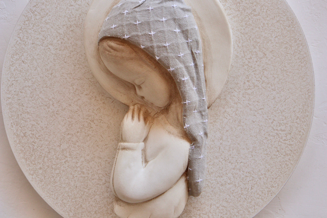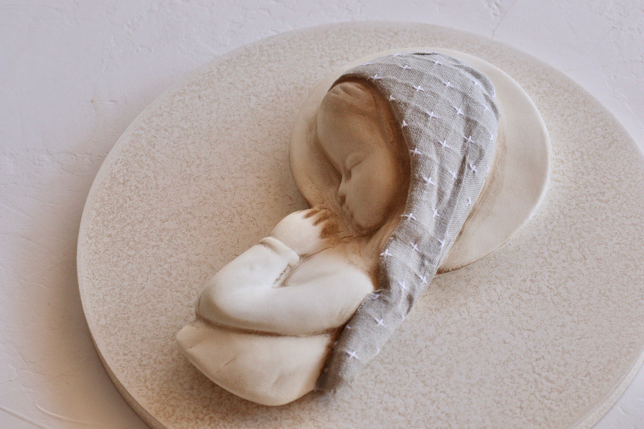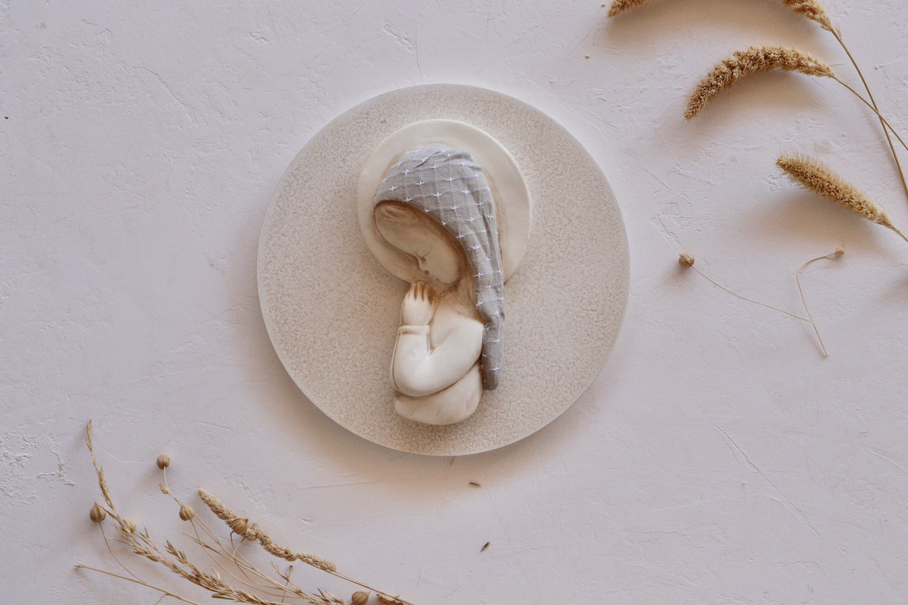 Nuestras virgencitas son un detalle especial y único a la hora de decorar la habitación de los pequeños de la casa. Las hacemos a mano, con mimo, de ahí su acabado lleno de detalles. No hay dos iguales, cada una de ellas habla por sí sola de la dedicación que les ponemos. Buscamos la combinación perfecta de materiales, colores y texturas para conseguir un objeto delicado, artesanal y capaz de transmitir el amor, la ternura y la protección de la maternidad.