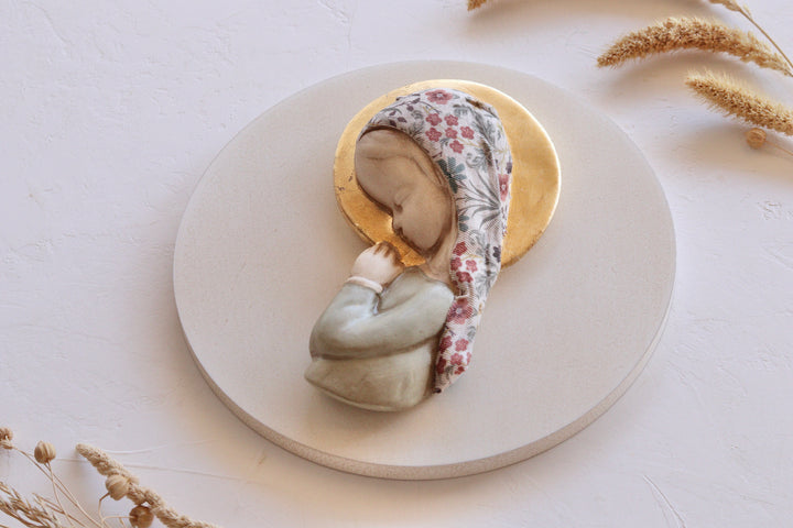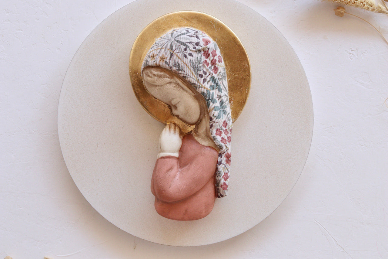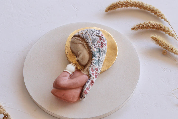 Nuestras virgencitas son un detalle especial y único a la hora de decorar la habitación de los pequeños de la casa. Las hacemos a mano, con mimo, de ahí su acabado lleno de detalles. No hay dos iguales, cada una de ellas habla por sí sola de la dedicación que les ponemos. Buscamos la combinación perfecta de materiales, colores y texturas para conseguir un objeto delicado, artesanal y capaz de transmitir el amor, la ternura y la protección de la maternidad.